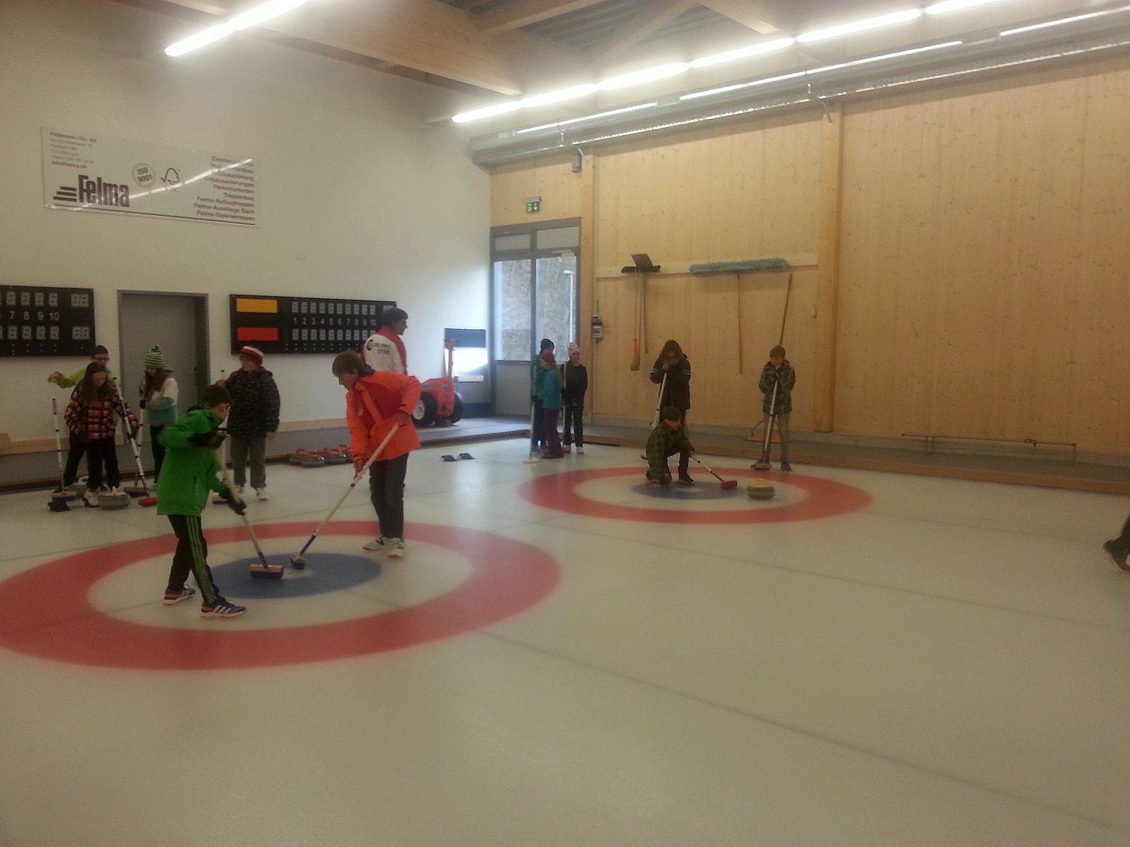 Am 4. März 2015 erlernte die 5./6. Klasse das Curling-Spielen. Das hat Spass gemacht!